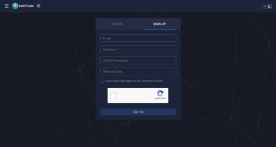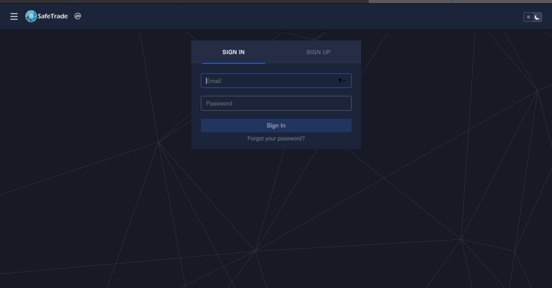 - To log in, go back to Safe.Trade website. Under the "sign in" tab your can enter your email address and password and click on "sign in".